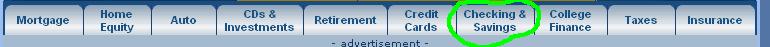 Go to BankRate.com and click the Checking & Savings tab. This will let you search for various types of Checking and Savings accounts.