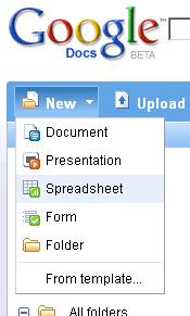 From the "New" menu on the left hand side near the top, select "Spreadsheet"