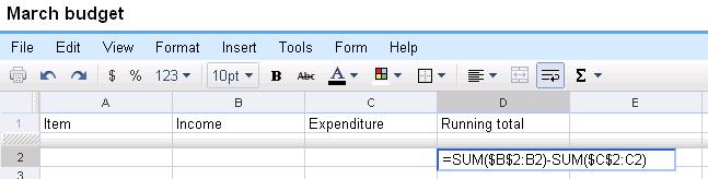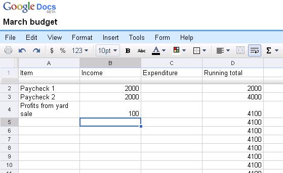 How to write a monthly personal budget using Google Docs Spreadsheets