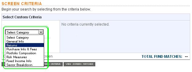 Put check marks next to the individual items that are important to you. In this image, I only want mutual funds that have averaged at least 8% over the last 10 years and at least 12% since the fund was created.