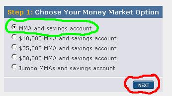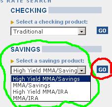 Under the "Savings" heading, select "High Yield MMA/Savings" and click "Go".