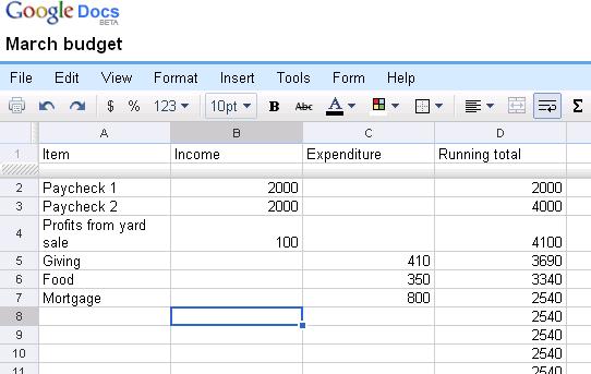 How to write a monthly personal budget using Google Docs Spreadsheets
